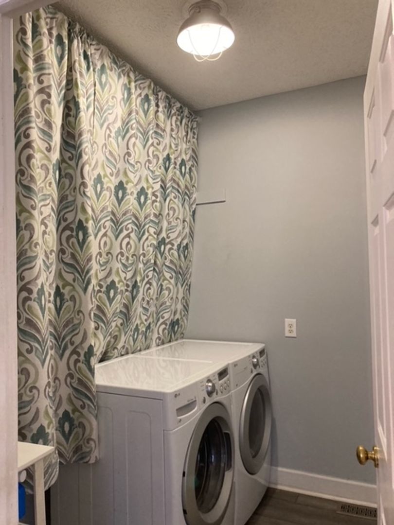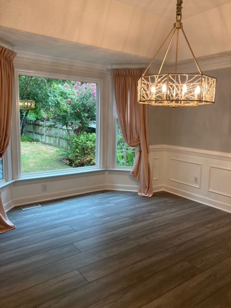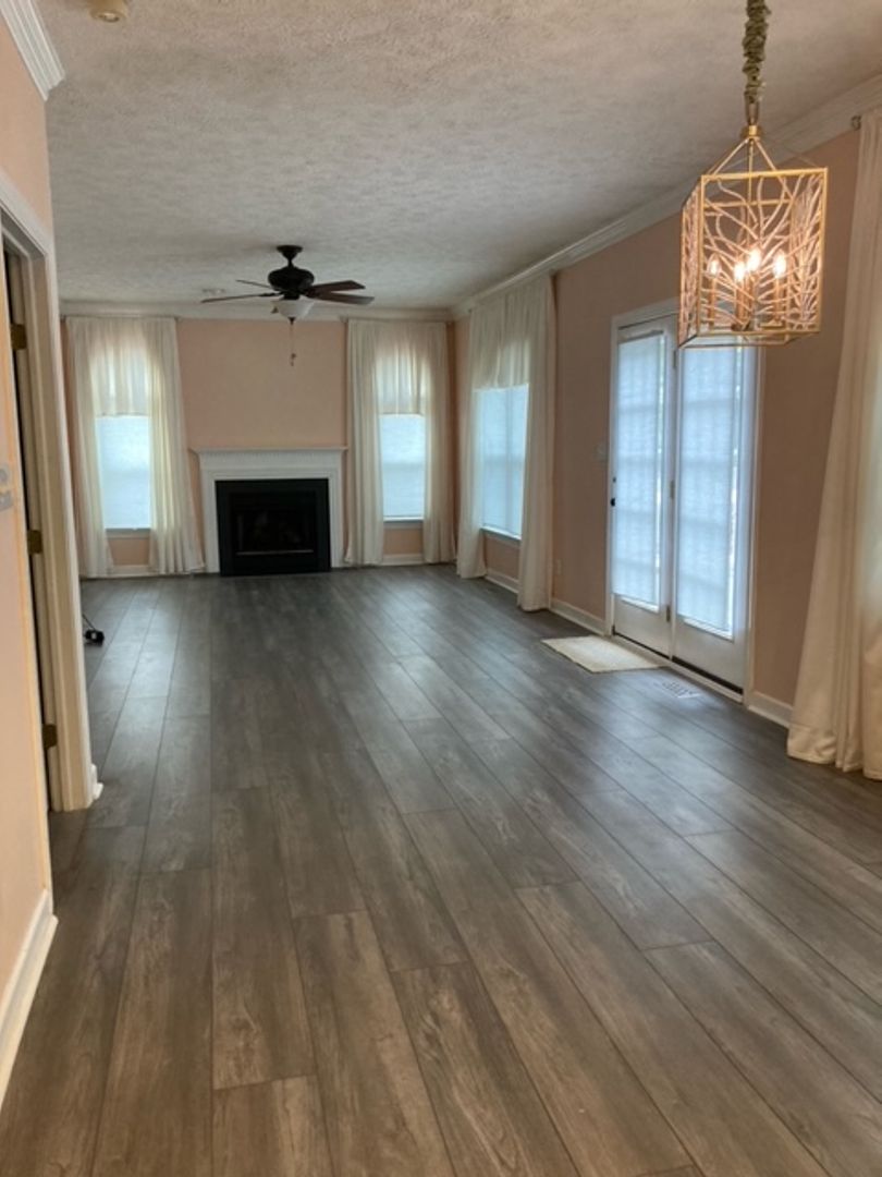 Four-bedroom home with all wood floors downstairs and carpet upstairs. Kitchen comes with refrigerator, stove, microwave, and dishwasher. Washer and dry included. Formal living room and dining room. Eat in kitchen. Large deck off back of house. Storage shed in back of property. Two car garage. Home has been renovated.